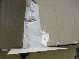現地確認したところ 外壁は、「ALC」が張ってありました。専用の補修材があるのでそれで修理を♪